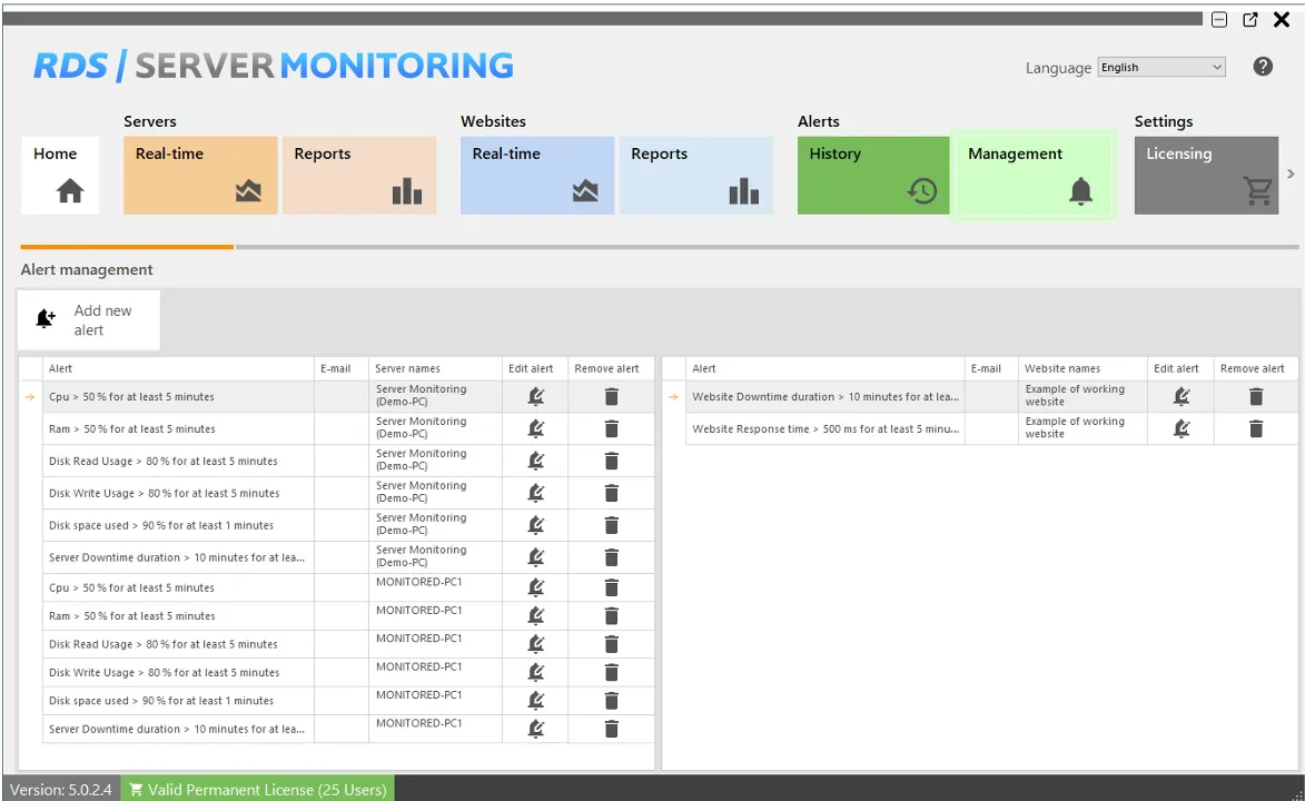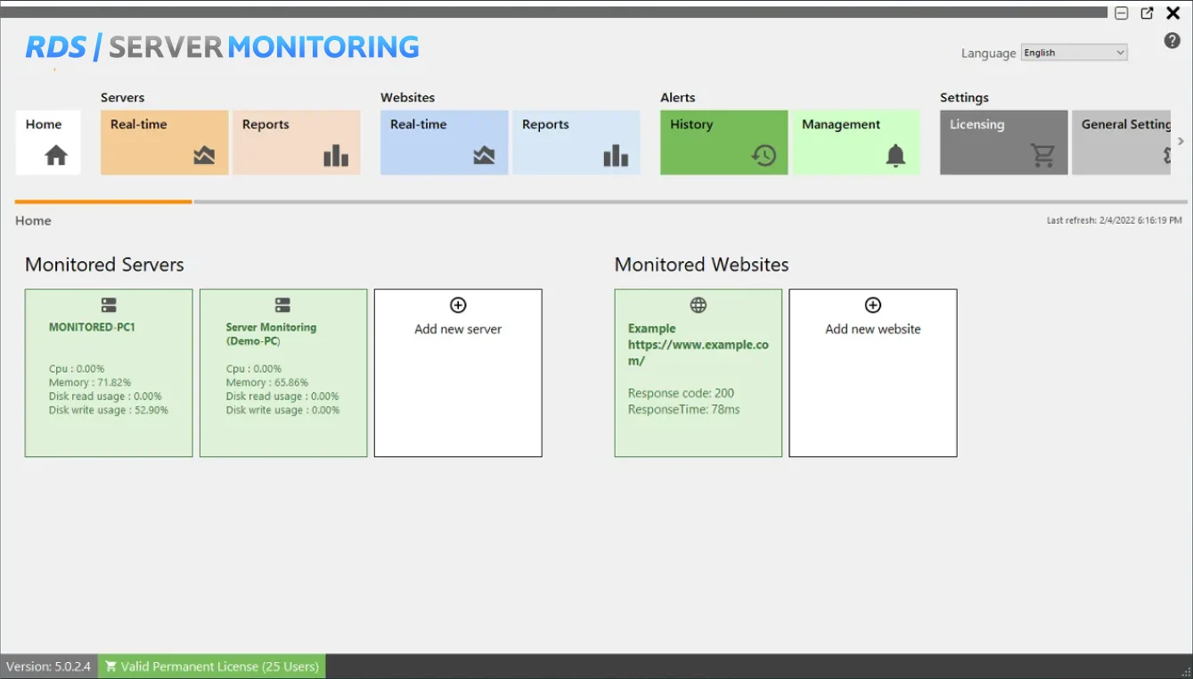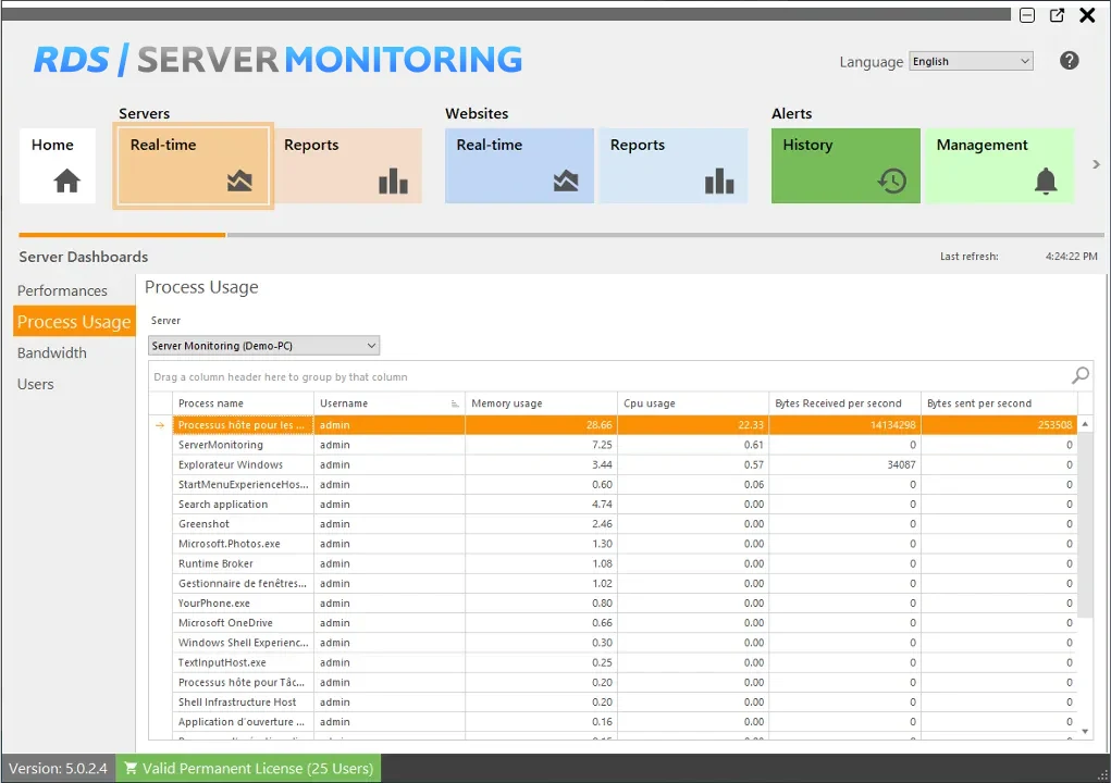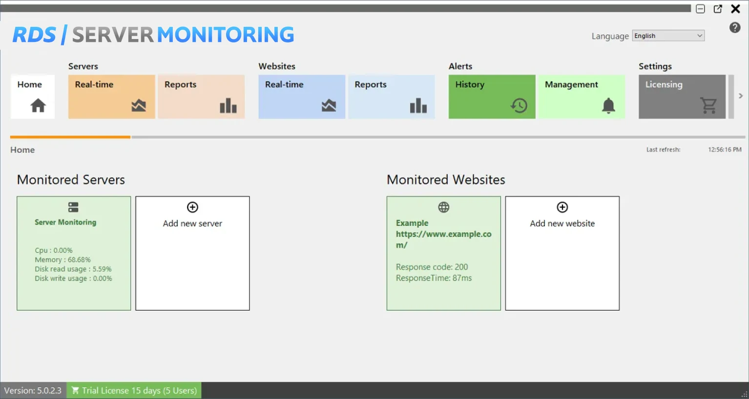 Real-time server and website monitoring software for RDS infrastructures. Get historical and real-time data about your servers, websites, applications and users.