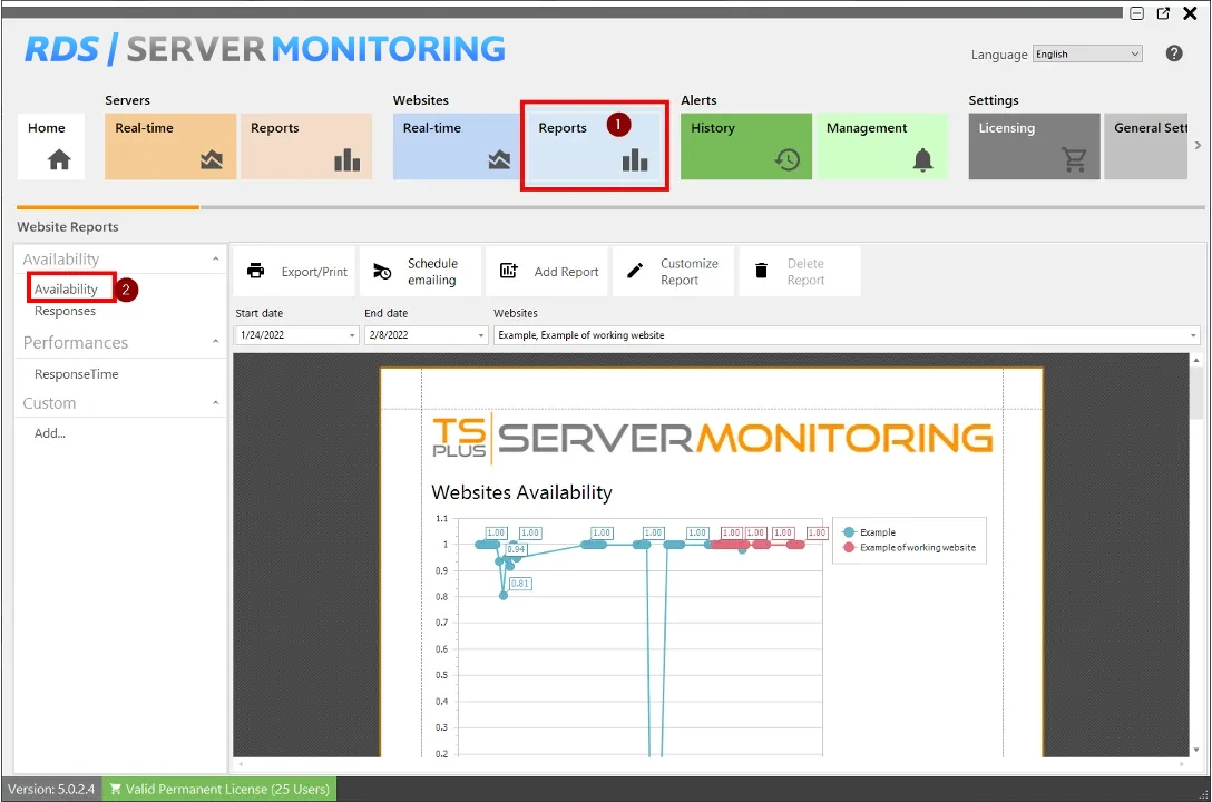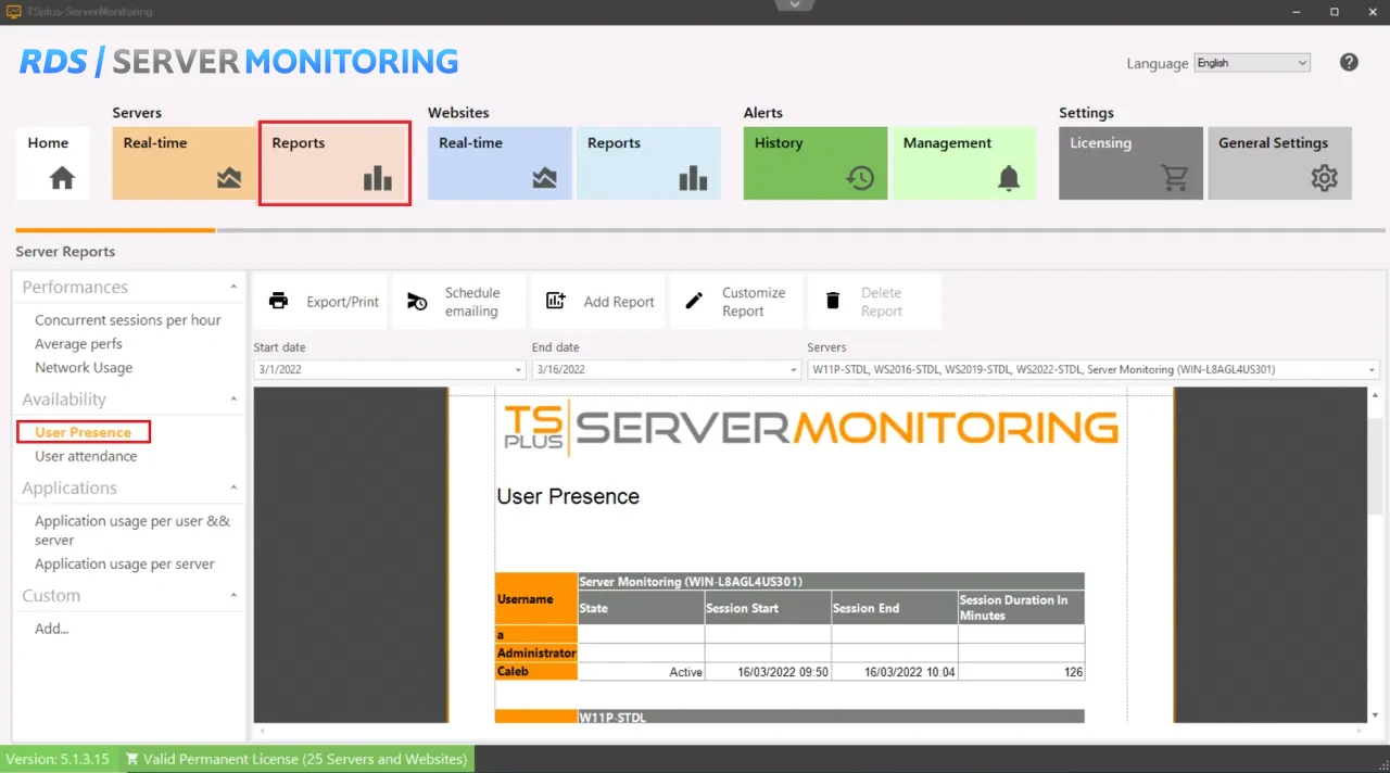 Get real-time reports and alerts of performance issues in your remote work infrastructure. Monitor all servers, websites, applications, and users from one user-friendly comprehensive console.