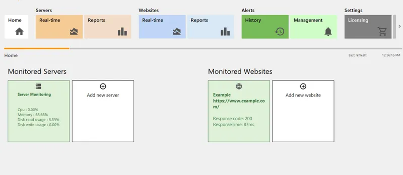 As you installed the Admin Console of Server Monitoring on one server, you can already monitor it as soon as you open the console.